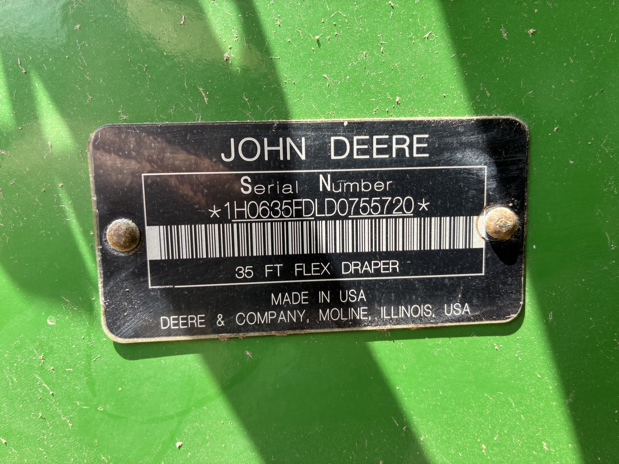 2012 635FD, 35' Flex Draper, Dual Knife Drive, Poly Tines. If interested please call or email to confirm availability.