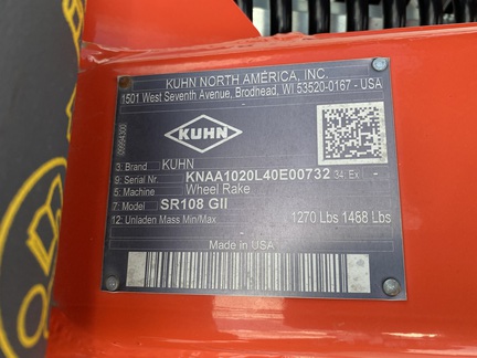 New 2023 Kuhn SR108GII 8-Wheel Rake, Less Center Kicker Wheel, 55" Rake Wheels, 3'-7' Windrow Width, Adjustable Spring Tension, Clevis Hitch, 1,270LBs, **PLEASE CALL OR EMAIL TO CONFIRM AVAILABILITY AND LOCATION OF MACHINE BEFORE TRAVELING TO SEE**
